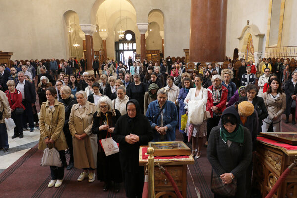 У молитвеној тишини верни народ се у рано суботње јутро окупио да дочека свог Патријарха и да принесе молитве Господу. Патријарху српском Иринеју саслуживали су свештенослужитељи Архиепископије београдско-карловачке, док је хор Светог деспота Стефана песмом славио и Господа прослављао. Академик Димитрије Стефановић је читао паримије и апостол.