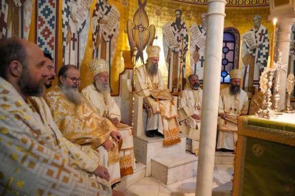 На крају свете Литургије, Светејши Патријарх г. Порфирије је заблагодарио Високопреосвећеном Митрополиту г. Георгију из Православне Охридске Архиепископије – Македонске Православне Цркве што је саслуживао и учествовао у раду дводневног међународног научног скупа „Од Никеје до данас (325–2025): Трајни значај Првог васељенског сабора“ (више о симпосиону видети ОВДЕ).