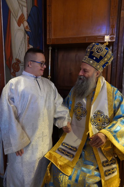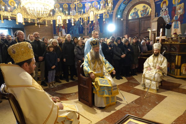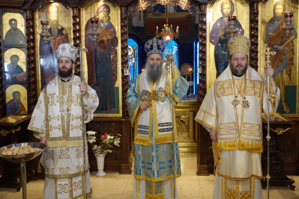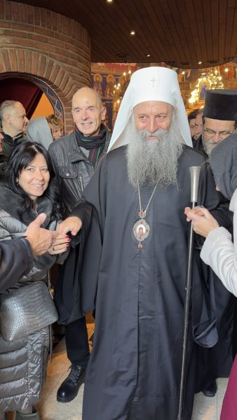 Његова Светост Патријарх српски г. Порфирије је служио 29. децембра 2024. године, на празник Материце, свету Литургију у храму Светог Василија Острошког на Бежанијској коси.