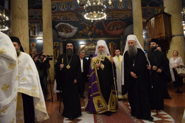 14/10/2024 14/10/2024 Поводом доласка Његове Светости Патријарха српског г. Порфирија и Његовог Блаженства Архиепископа охридског и македонског г. Стефана у Епархију нишку, у Саборном храму Силаска Светог Духа на Апостоле у Нишу 13. октобра 2024. године служен је свечани чин доксологије. Предстојатељe Српске Православне Цркве и Охридске Архиепископије – Македонске Православне Цркве у Саборном храму у Нишу...