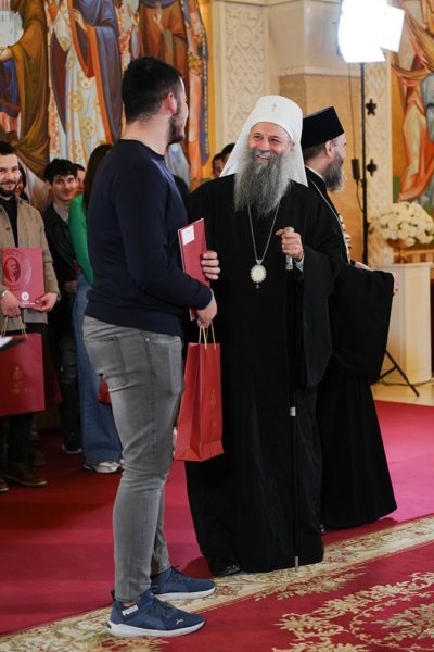 Његова Светост Патријарх српски г. Порфирије је вечерас у крипти храма Светог Саве на Врачару, трећу годину заредом, поделио стипендије даровитим ученицима и студентима који потичу из вишедетних породица слабијег имовинског стања.