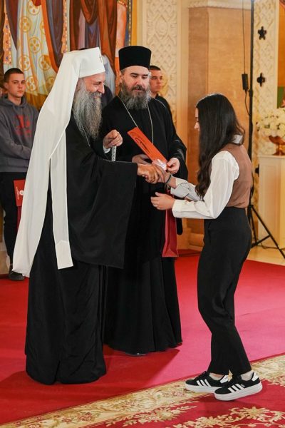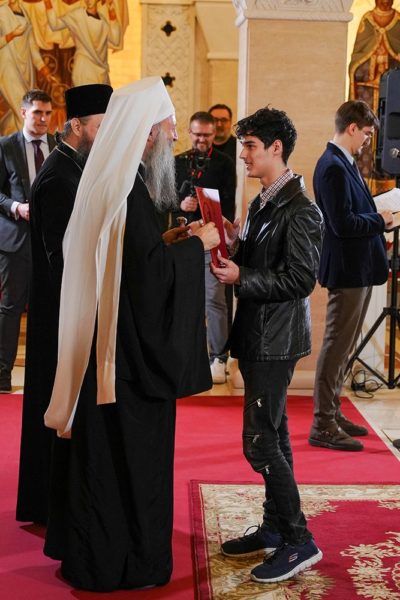Његова Светост Патријарх српски г. Порфирије је вечерас у крипти храма Светог Саве на Врачару, трећу годину заредом, поделио стипендије даровитим ученицима и студентима који потичу из вишедетних породица слабијег имовинског стања.