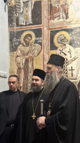 Свештену пратњу поглавара Српске Патријаршије чине: Његово Преосвештенство викарни Епископ топлички г. Петар; високодостојни архимандрит г. Данило, директор Патријаршијске управне канцеларије; протођакон др Драган Радић, професор Богословског факултета у Београду; ђакон Василије Бурсаћ, директор Поклоничке агенције Доброчинство; и ипођакон Дејан Накић.