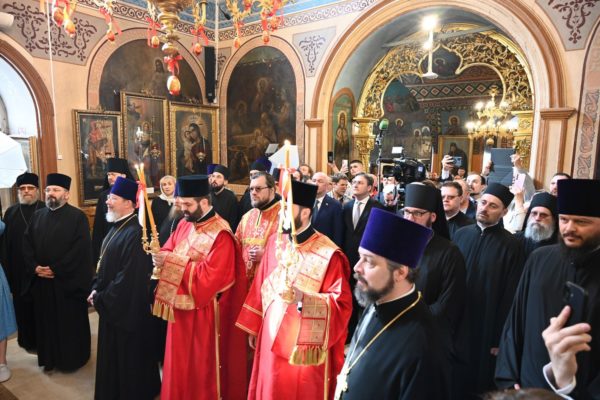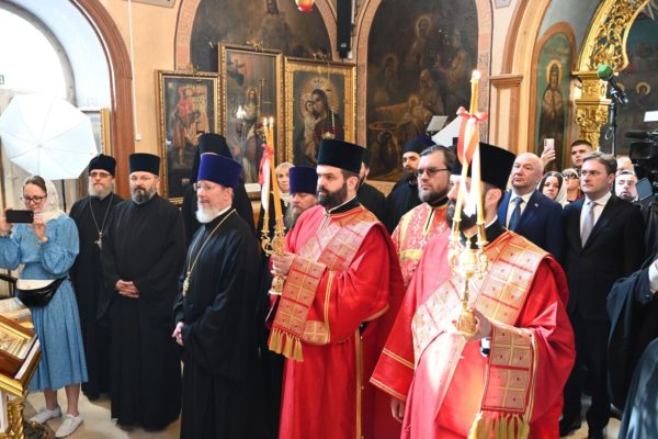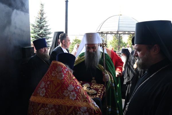 Његову Светост Патријарха г. Порфирија дочекао је старешина Подворја Српске Православне Цркве у Москви Преосвећени Епископ ремезијански г. Стефан. Његова Светост се обратио присутнима васкршњим поздравом и сажетом пригодном беседом о значају Васкрсења Христовог за сваког верујућег хришћанина. Потом је Патријарх српски г. Порфирије ступио у олтар, а затим је положио цвеће на гроб блаженопочившег епископа Антонија (Пантелића).