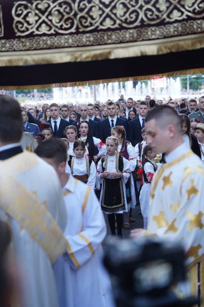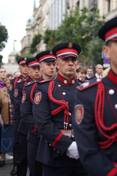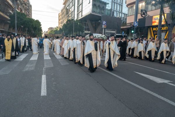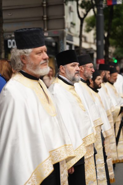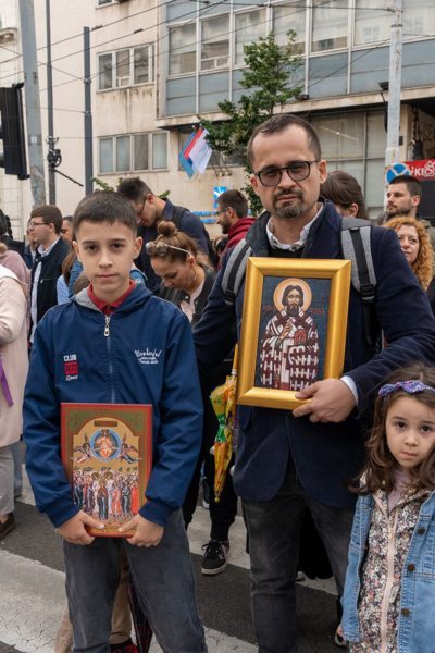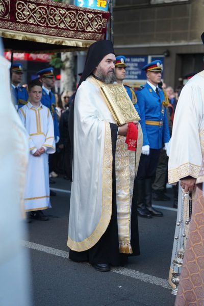 По свештеној традицији и добром обичају, праћена звуком звона Вазнесењског храма, са Патријархом и архијерејима на челу, литија је кренула из улице Кнеза Милоша. Његова Светост Патријарх српски г. Порфирије је ишао испод неба, кога су носили припадници Гарде Војске Србије. На челу литије Часни крст је поносно носио чувени београдски алас и херој г. Ренато Грбић, а за њим су се у беспрекорном реду и једнодушном поретку кретали свештеници и монаси, припадници Гарде Војске Србије и Жандармерије, Полицијски оркестар, црквени хорови и певачка друштва, ученици Богословије Светог Саве и студенти Православног богословског факултета, запослени у градским установима и службама, вероучитељи са ђацима основних и средњих школа и њиховим родитељима, највиши представници државе и града и хиљаде богољубивих душа радосних због великог благослова највећег и најлепшег изданка српског рода – Светитеља Саве.