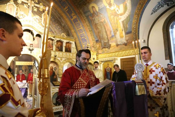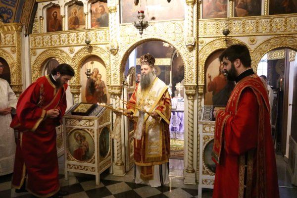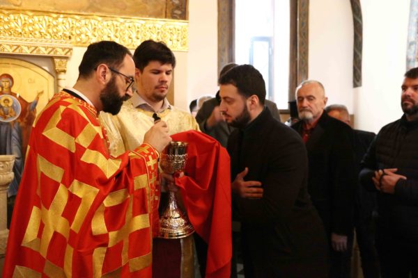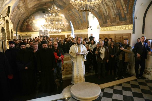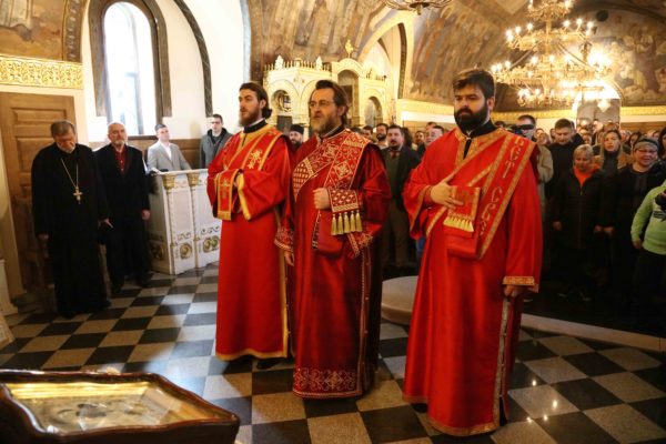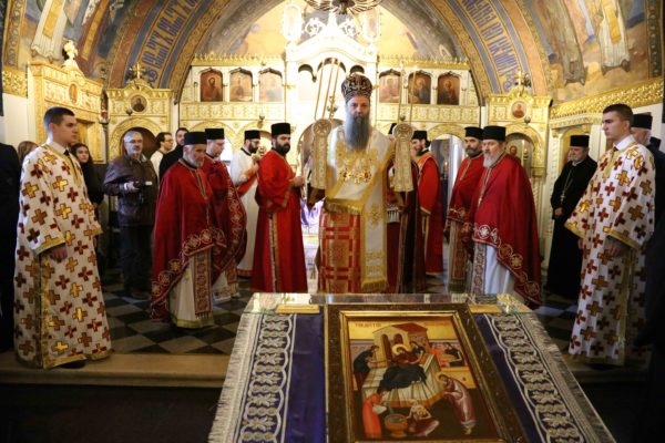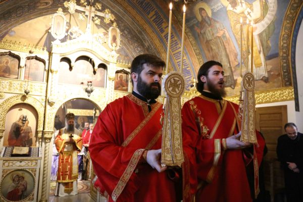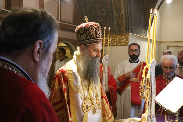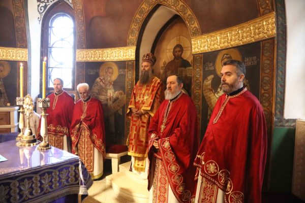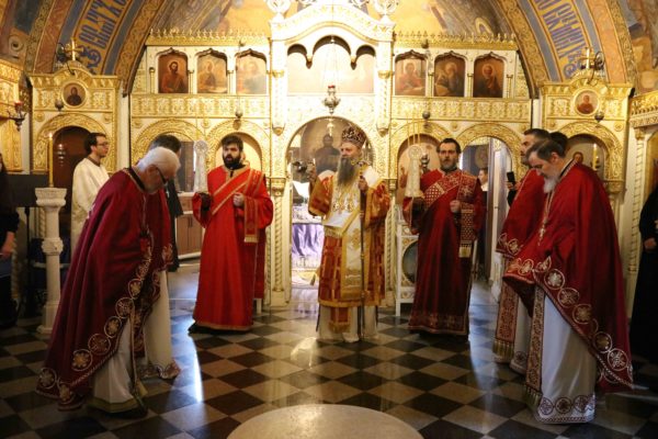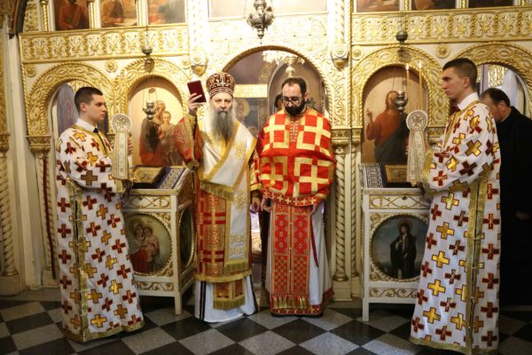 Саслуживали су протојереји-ставрофори Саво Јовић и Радомир Радовановић, јереји Зоран Деврња и Сава Милин, протођакони Драган Радић и Радомир Врућинић и ђакон Николај Вуковић. У току свете Литургије, Његова Светост г. Порфирије рукоположио је ђакона Владимира Радовановића, управника Музеја Српске Православне Цркве, у чин презвитера. Том приликом, патријарх Порфирије је беседио: