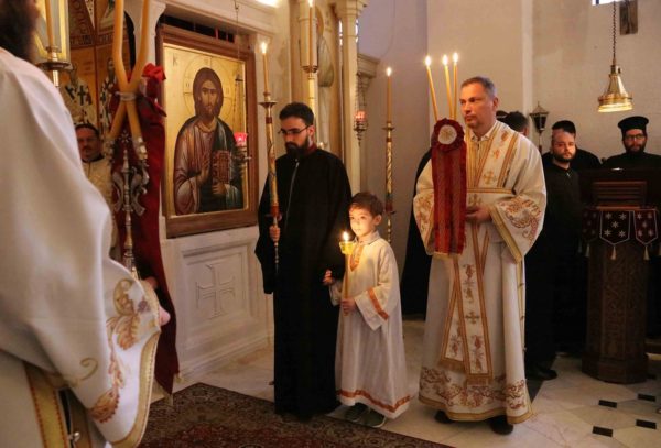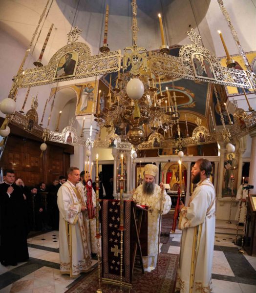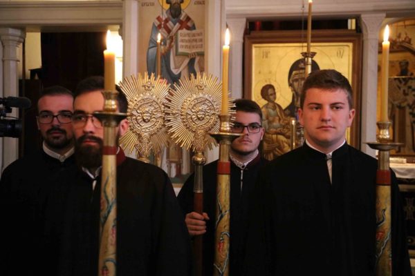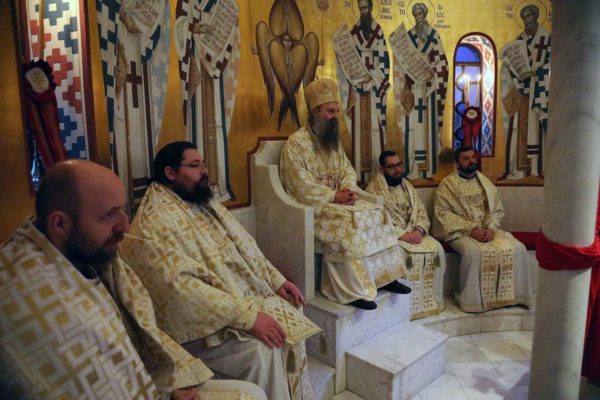 Његовој Светости Патријарху српском г. Порфирију су саслуживали архимандрит Прокопије (Тајар) из Антиохијске Патријаршије, јеромонах Нектарије (Ђурић), протонамесник Драган Поповић, јереј Бориша Шањић, јерођакон Сава (Бундало) и ђакон Здравко Јовановић.