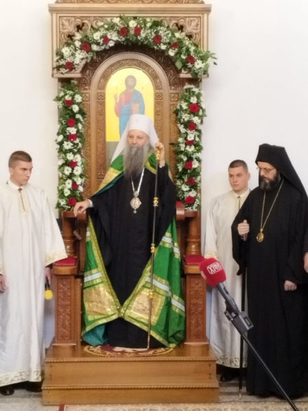 – Христос Васкрсе! Велики је дан данас а још већа радост у срцима свих нас, јер нам је дошао онај који од нас молитвено никад није отишао и никада не одлази. Патријарх српски, наследник на трону Светога Саве, поглавар наше Свете Цркве, наш отац ,брат и пријатељ. Његова Светост Патријарх српски г. Порфирије.