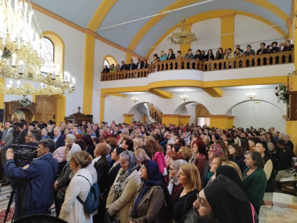 Радујући Вам се као деца добром оцу и благодаримо Пресветој Богородици што нас је удостојила да обновимо овај храм њој посвећен, да наставимо оно што су нам започели преци како би потомци нашег нараштаја имали на кога да се угледају када нас не буде на овом свету. Наша воља је јача од наших моћи и да нам је Господ подарио снаге да учинимо више него што можемо по вери нашој и вери отаца наших. Остајемо вечно захвални што сте нашли парче времена да будете са нама данас и сутра са нама физички овде и довека молитвено. Још једно Вам у име свих синовски благодарим, позивајући да нам кажете коју спасосну реч на корист душама нашим. Наша Светости добро дошли нам у Мркоњић Град! Поучите нас и благословите!