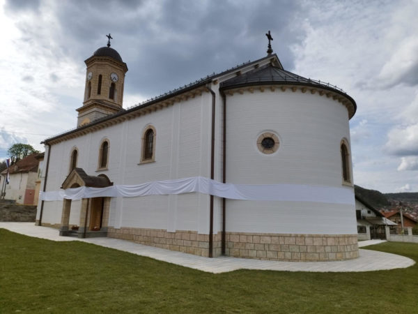 Сведок је дакле овај храм да сте ви Христови и да добро знате да ми имамо и душу, а не само тело. И као што је човек без душе утвара или мртвац тако је једна заједница, једно насеље, један народ без храма утвара или леш. Али тамо где постоји храм, храм посвећен живоме Богу, храм у коме се сабирају и светитељи Божји и у којем се заједно са њима молимо нашем Спаситељу Једноме у Тројици Богу, ту сабирани и сабирајући се са својим местом и својим насељем и ми показујемо и откривамо да смо живи организам. Да смо један организам, да смо живи а не леш. Наш народ откад зна за себе од Светога Саве па на овамо, од Светога Саве који нас је крстио у Јеванђеље Христово и који нам је даровао православну веру и који нас је једанпут за свагда упутио којим путем да идемо и сам тај пут пропутио и учинио прве кораке за нас, учинио је да нас наша православна вера, кроз векове, обликује; да наша православна вера чини оно што јесмо, да буде простор у којем смо и кроз који смо дали најлепше, најузвишеније плодове своје вере, своје духовности али и своје културе. Такве плодове да нас по њима и данас као и некад, а биће тако и у будућности, препознаје читав свет.