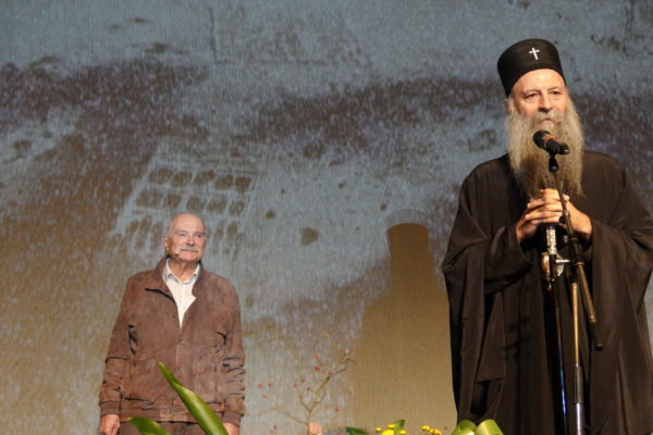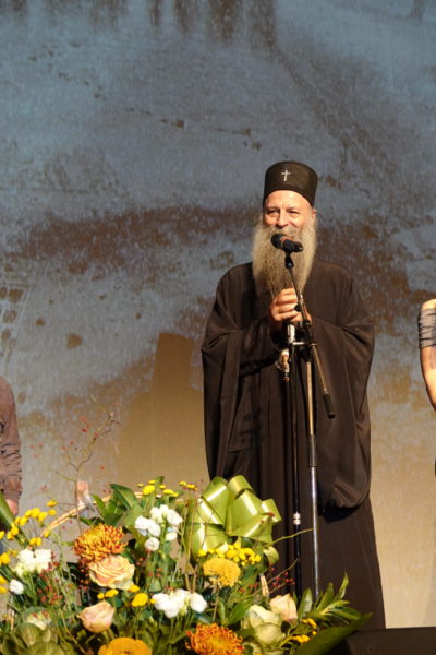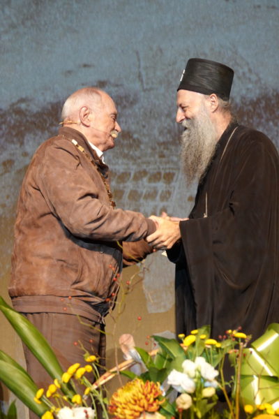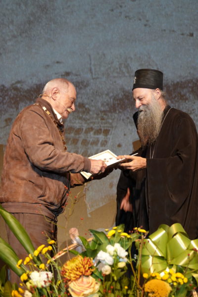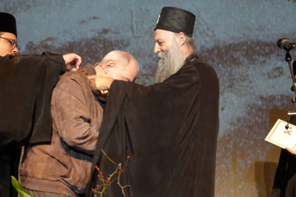 Светејши Патријарх г. Порфирије је затим присутнима објаснио да је предлог за одликовање великог уметника покренут још за време блажене успомене патријарха Иринеја. – Али како то обично бива: да један сеје, други окопава, трећи жање, а четврти, који је најмање заслужан, има благослов да се храни од такве богате трпезе. Достојан – поручио је патријарх Порфирије.