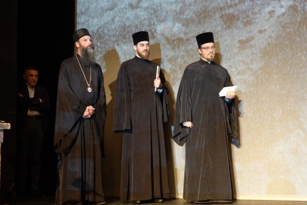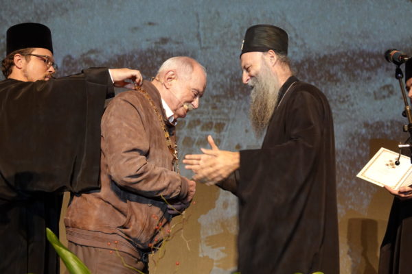 – Неко је одлучио да због Вашег достојанства и људског поштења, због Вашег отвореног сведочења православних јеванђељских вредности, да Вам укине да примате златне предмете: палме, шкољке, медведе, лавове… Наша Српска Православна Црква, препознавајући Ваше сведочење аутентичног, здравог, нормалног, у складу са Божјим планом човека, који је заправо универзални човек, одлучила је да Вас награди својим највишим признањем, орденом Светог Саве првог степена.
