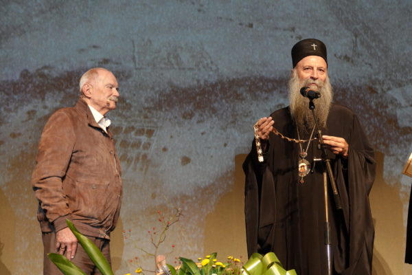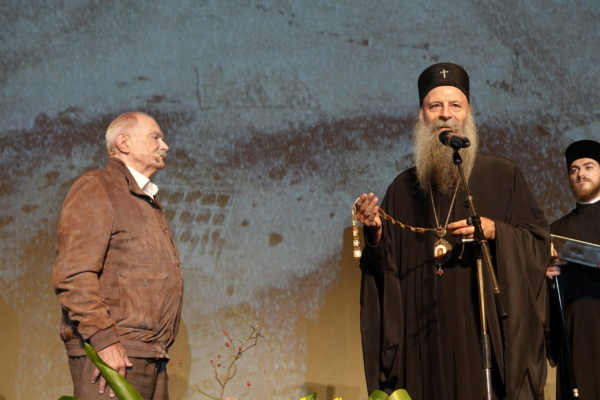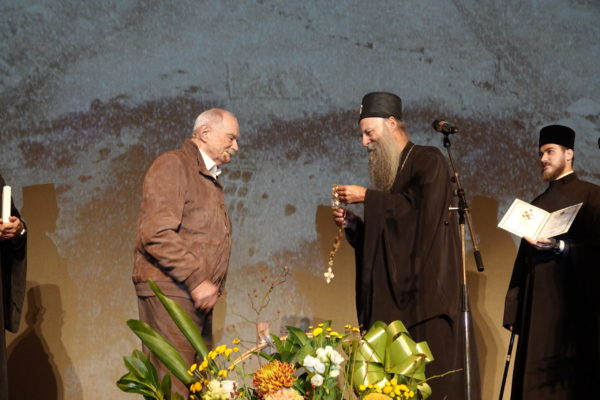 Његова Светост Патријарх српски г. Порфирије је уручио вечерас, 27. октобра 2024. године, на Великој сцени Народног позоришта у Београду орден Светог Саве првог степена г. Никити Михалкову, прослављеном редитељу и глумцу, народном уметнику Руске Федерације.