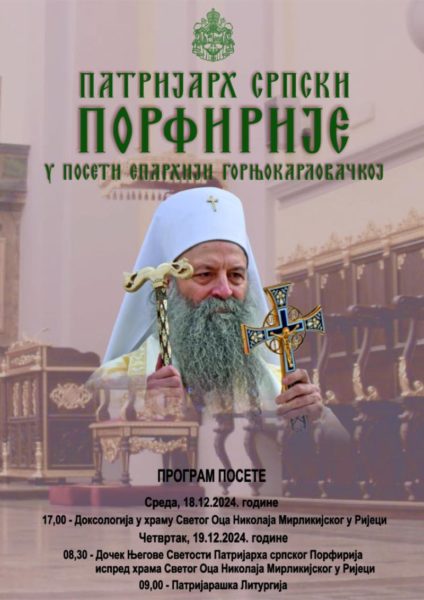 Предстојатељ Српске православне цркве биће свечано дочекан у Ријеци 18. децембра 2024. године, када ће у Храму Светог оца Николаја мирликијског бити служен свечани чин доксологије са почетком у 17 часова. Сутрадан, на дан храмовне славе 19. децембра 2024. године, Патријарх Порфирије ће служити Свету литургију са почетком у 9 часова.
