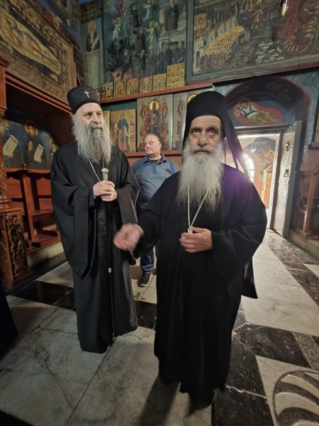 Срдачно дочекан од игумана и братије, патријарх Порфирије се поклонио моштима оснивача манастира, Светог Саве Освећеног, које се чувају у Саборном храму посвећеном Благовестима. Том приликом, патријарх Порфирије је поручио: