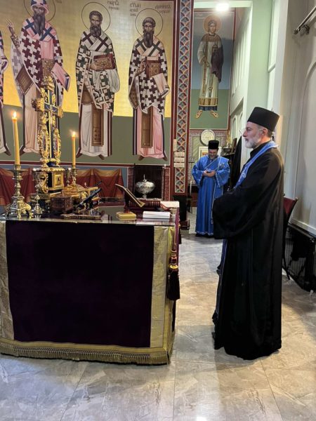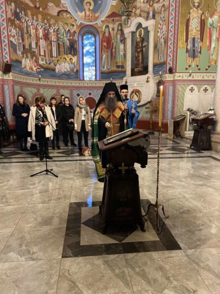 Његова Светост Патријарх српски г. Порфирије служио је 17. марта 2023. године у цркви Светог Александра Невског у Београду молебан са акатистом Пресветој Богородици за наш верни народ и светиње на Косову и Метохији.
