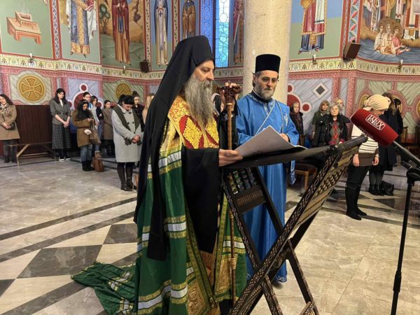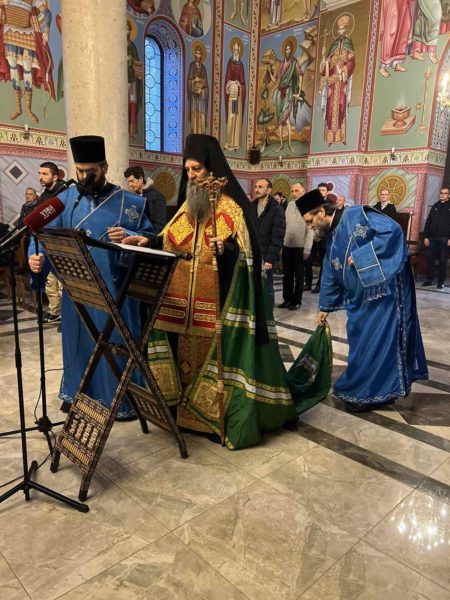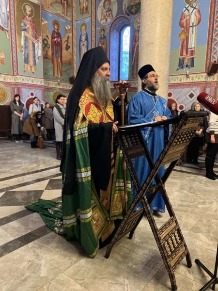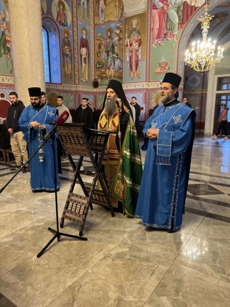 Његова Светост Патријарх српски г. Порфирије служио је 17. марта 2023. године у цркви Светог Александра Невског у Београду молебан са акатистом Пресветој Богородици за наш верни народ и светиње на Косову и Метохији. spc.rs