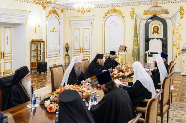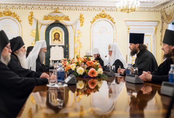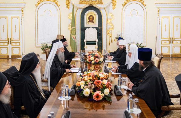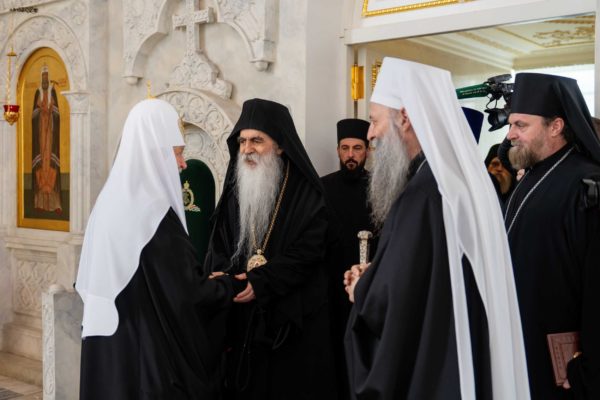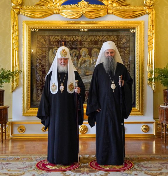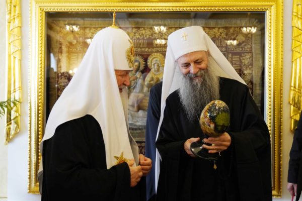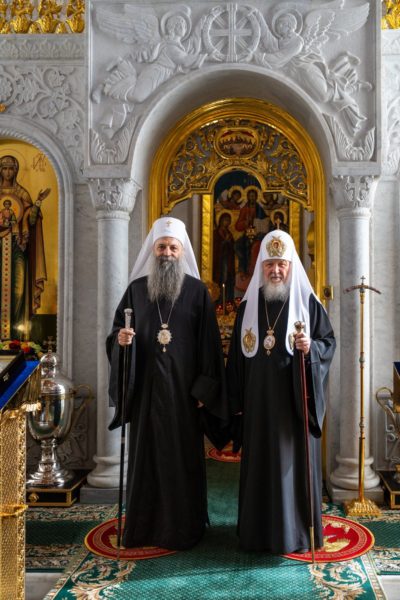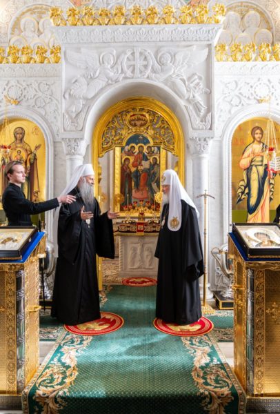 Његова Светост Патријарх српски г. Порфирије, који се са посланством Српске Православне Цркве налази у вишедневној посети Москви, разговарао је данас у Патријаршијској и Синодалној резиденцији у Даниловском манастиру са поглаваром Руске Православне Цркве, Светејшим Патријархом московским и све Русије г. Кирилом.