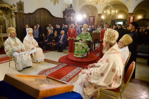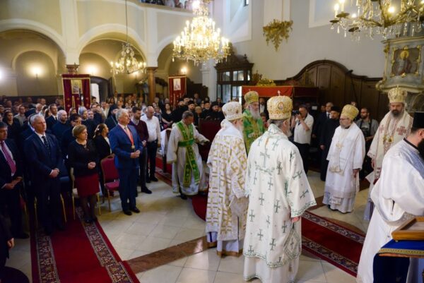Свјатјејшем Патријарху саслуживали су Епископи бачки г. Иринеј, будимски г. Лукијан, буеноајрески и јужноамерички г. Кирило и викарни мохачки г. Исихије са свештенством. Светој Литургији присуствовали су подпредседник Владе Мађарске др Шемјен Жолт и државни секретар г. Шолтес Миклош.