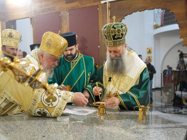 Његова Светост Патријарх српски г. Порфирије је началствовао 5. октобра 2025. године свечаним чином великог освећења храма Свете браће Кирила и Методија у Марибору, а затим и светом Литургијом у новоосвећеном Дому Божјем.
