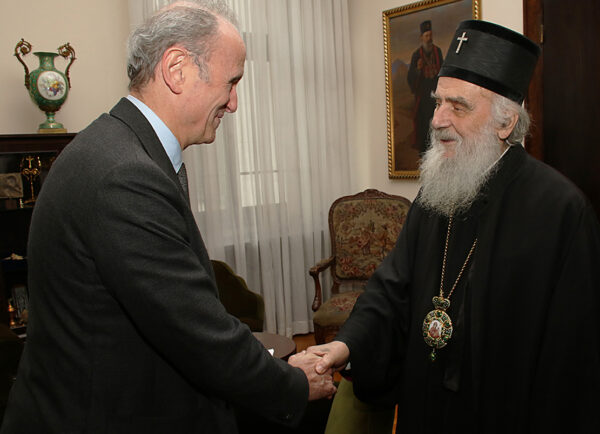 Његова Светост Патријарх српски г. Иринеј примио је 7. новембра 2019. године у Патријаршији српској у Београду новоименованог амбасадора Француске у Србији, Његову Екселенцију Жан-Луја Фалконија.