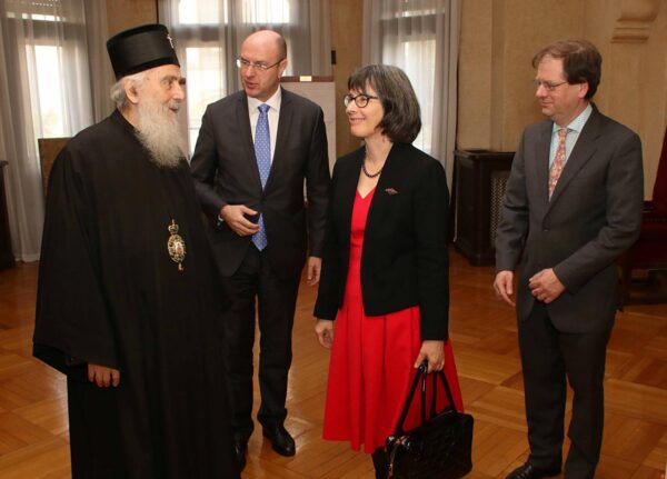 Његова Светост Патријарх српски г. Иринеј примио је 15. октобра 2019. године у Патријаршији српској у Београду новоименовану амбасадорку Велике Британије у Републици Србији Њену Екселенцију Шан Меклауд.