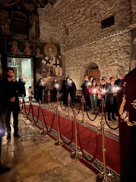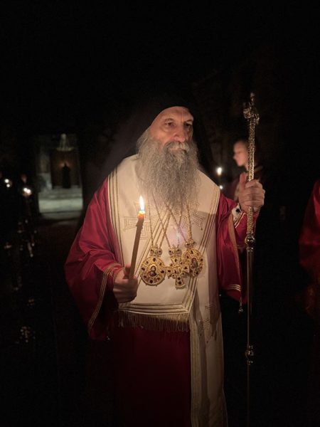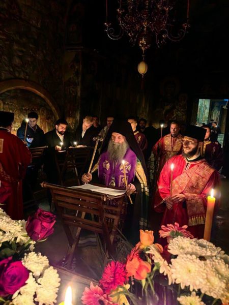 Обраћајући се сабранима у манастирској порти, Патријарх српски г. Порфирије је нагласио да је Велики петак за нас људе тужан и трагичан дан, јер смо распели Господа: – Ми Га и данас непрестано распињемо кад год смо себични и када гордост влада нашим бићем. У исто време, ово је благословен дан. Господ је постао све оно што смо ми, прошао је све што људи пролазе и умро је на крсту да би укинуо последњу препреку која нас раздваја од Царства Божјег, а то је смрт. Он је својом смрћу разорио и победио смрт.
