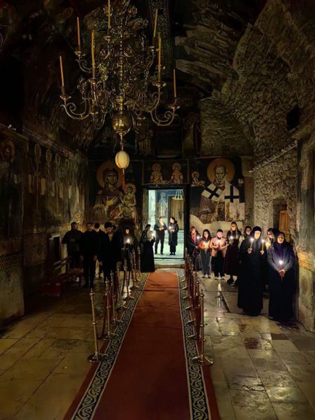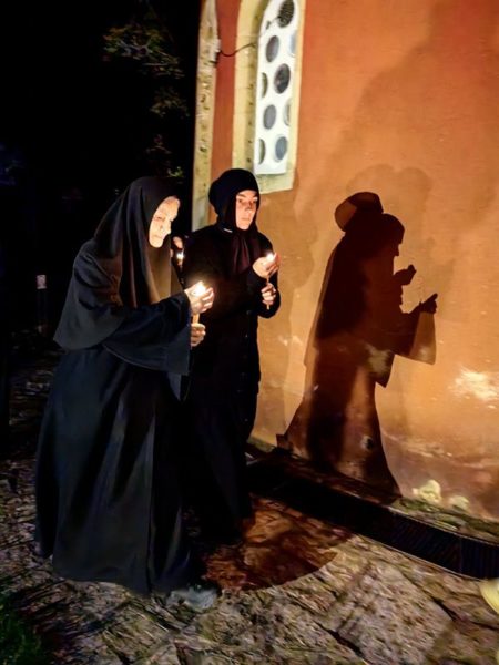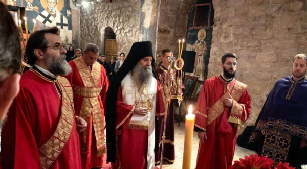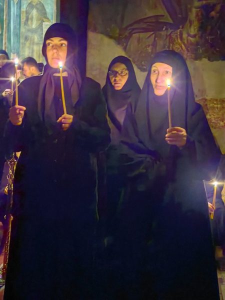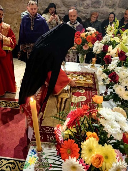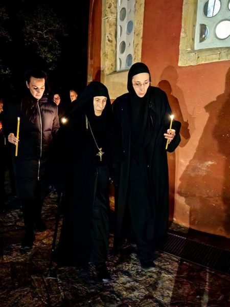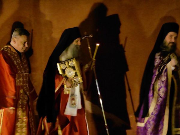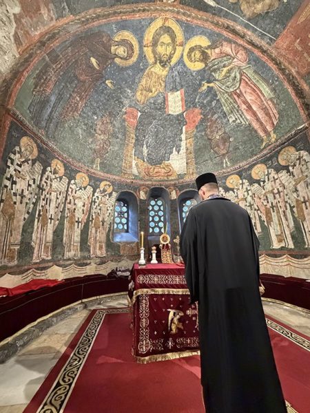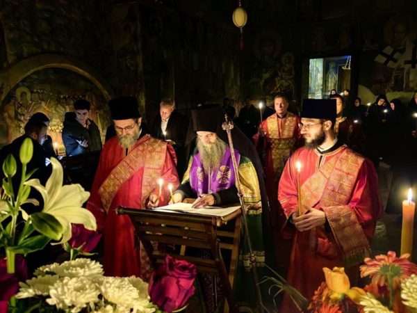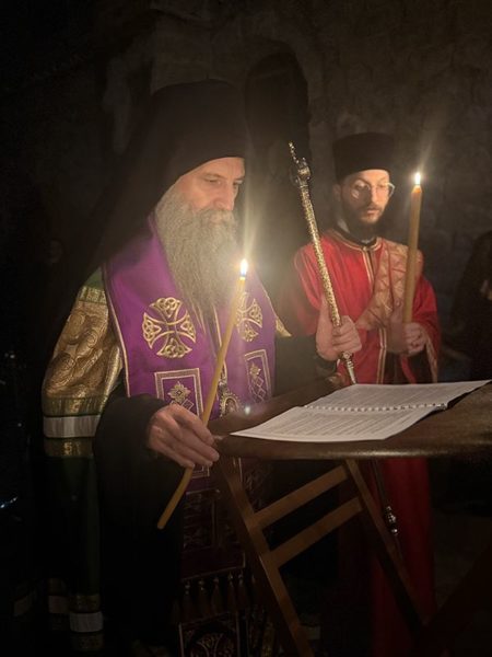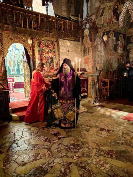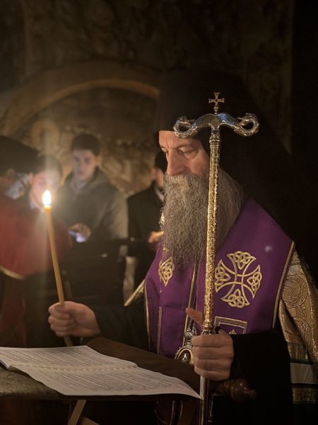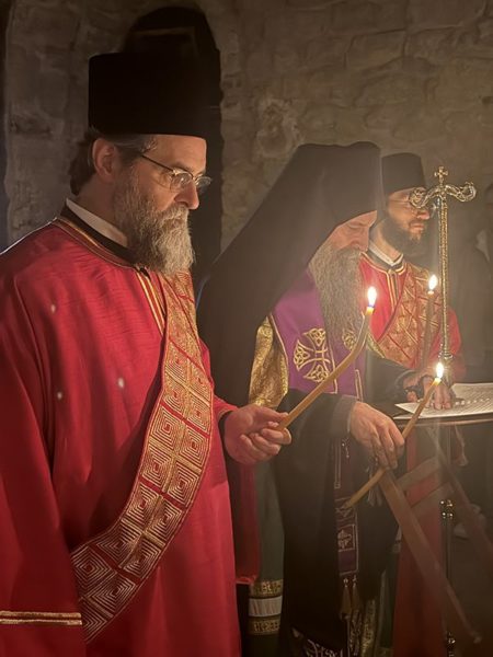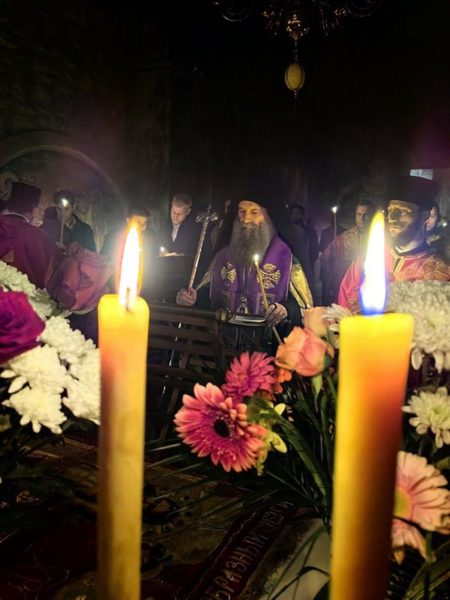 Његова Светост Патријарх српски г. Порфирије је служио на Велики петак, 10. априла 2026. године, у манастиру Пећкој Патријаршији вечерње са изношењем плаштанице, уз молитвено учешће високопреподобне игуманије Харитине, сестринства, свештенства и верног народ из Метохије и многих других крајева.