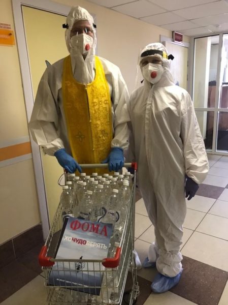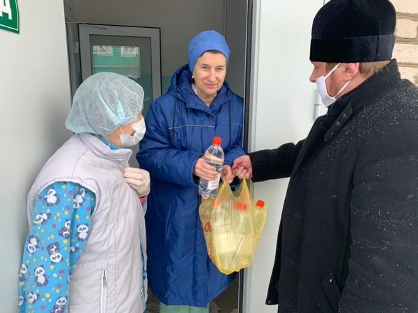 19 января, в праздник Святого Богоявления – Крещения Господа Бога и Спаса нашего Иисуса Христа, священнослужители Пензенской епархии посетили все «красные зоны» ковидных госпиталей региона для того, чтобы поддержать пациентов и медицинских работников, которые борются с COVID-19. В рамках крещенской акции в больницы региона было доставлено около 2,5 тысяч бутылок святой воды. Также с праздником Крещения пациентов и сотрудников больниц, подопечных социальных учреждений поздравили архиереи и священники в Ставропольской, Пятигорской, Златоустовской, Новокузнецкой, Калининградской, Бирской епархиях. Они передали в медицинские и социальные учреждения крещенскую воду и иконы.