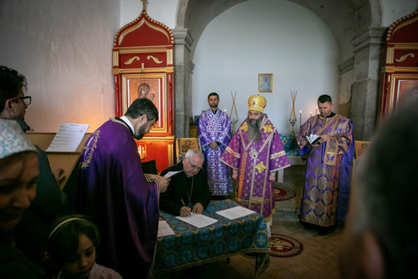 Перед началом богослужения был подписан протокол о передаче часовни святой Маргариты в пользование Испано-Португальской епархии Русской Православной Церкви сроком на 25 лет. Со стороны местной католической епархии документ подписал почетный епископ Сан-Томе и Принсипи дон Мануэл Антониу душ Сантуш.