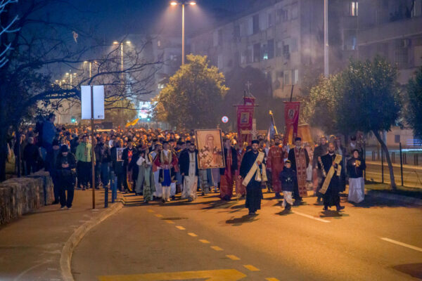 Након одслуженог молебна у Саборном храму Христовог Васкрсења, литију свештенства и вјерног народа улицама Подгорице предводио је архимандрит Иларион (Лупуловић), игуман манастира Драганац са КиМ, архијерејски замјеник Епископа рашко-призренског г. Теодосија, са дечанским монасима.