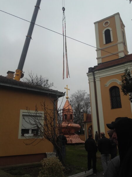 Kупола је рађена по нацрту претходне, направљена је од дрвета и обашивена бакром са позлаћеним крстом на врху. Његово Преосвештенство Владика сремски г. Василије на вечерњем богослужењу 12. децембра 2019. године освештао је крстове а купола је дигнута на свети храм 14. децембра 2019. године у молитвеном присуству многобројног верног народа.
