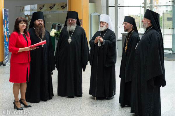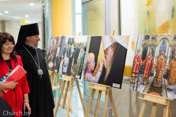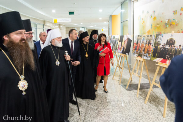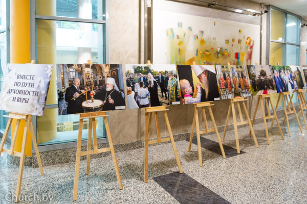 Прибыв в Национальную библиотеку, Патриарший Экзарх, председатель Минского облисполкома и архиереи Минской митрополии осмотрели фотовыставку, посвященную церковно-общественной жизни в пределах Минской области. Осмотр экспозиции сопровождался живой музыкой в исполнении ансамбля «Амелия» Молодечненского государственного музыкального колледжа имени М.К. Огинского.