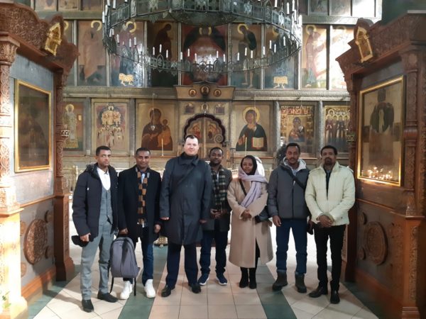 10 марта 2024 года члены московского молодежного объединения верующих Эфиопской Церкви «Махибере Селассие» (в переводе с амхарского языка – «Свято-Троицкая община») в сопровождении сотрудника ОВЦС С.Г. Алферова посетили Сретенский ставропигиальный мужской монастырь г. Москвы.