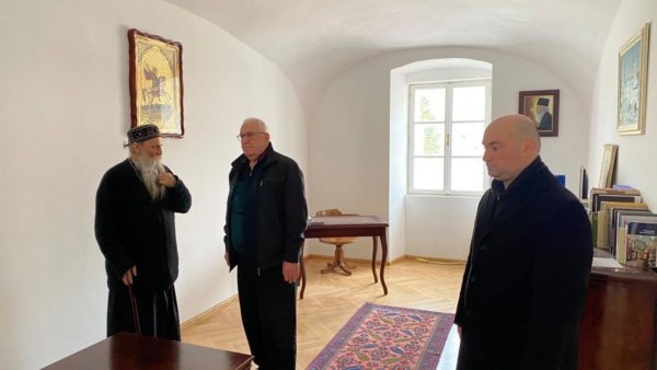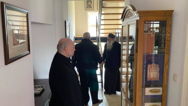 У Епископској резиденцији у Пакрацу уважене госте примио је Његово Преосвештенство Владика славонски г. Јован и том приликом детаљно их упознао с животом, радом и обновом Епископије, светиња, Епископске књижнице и плановима обнове.