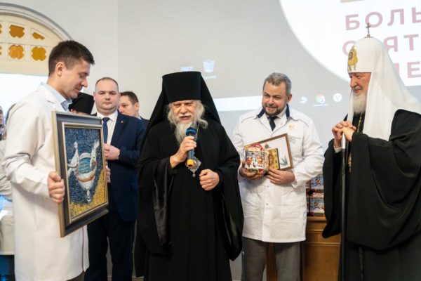 В дар больнице Святейший Патриарх Кирилл передал сертификат на кардиорегистратор, от фонда «Россия Православная», всем сотрудникам — иконки Спасителя с Патриаршим благословением, а также сладкие подарки.