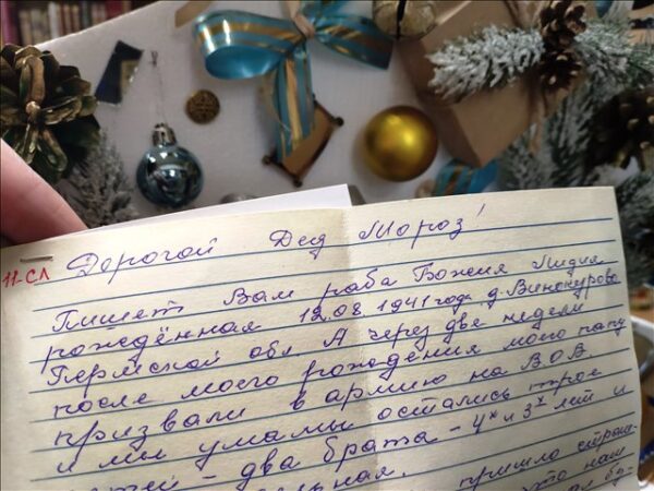 – Я родилась в 1945 году, война только закончилась, очень хорошо помню, как мама меня отправила морозным утром отстоять очередь за сахаром, – пишет в своем письме одна из прихожанок. – Тогда, я бы попросила в подарок самых простых сладостей, а сейчас хочу, чтобы было здоровье и мир на земле, чтобы Господь оберегал нашу матушку Россию.