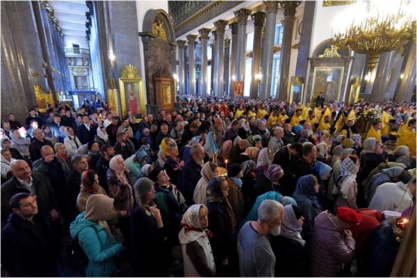 Пели братский хор и смешанный хор Санкт-Петербургской духовной академии под управлением Раисы Гундяевой.