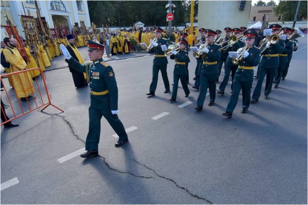 В полдень у памятника святому Александру Невскому после встречи с малым крестным ходом от Свято-Троицкого собора был отслужен молебен небесному покровителю Санкт-Петербурга. Его возглавил митрополит Варсонофий.