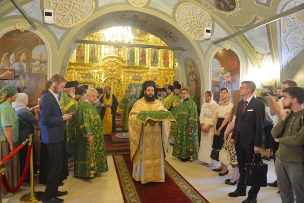 На богослужении присутствовали ректор Национального исследовательского ядерного университета «МИФИ» М.Н. Стриханов, ректор Московского государственного лингвистического университета (МГЛУ) И.А. Краева, декан факультета Международной журналистики МГИМО Я.Л. Скворцов, настоятельница Одесского Архангело-Михайловского женского монастыря игумения Серафима (Шевчик), сотрудники, члены профессорско-преподавательского состава и учащиеся ОЦАД.