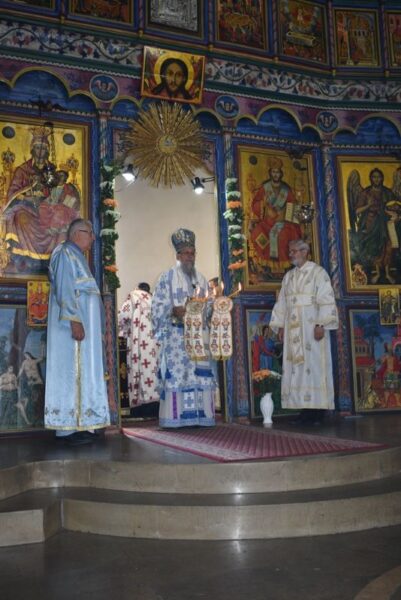 На крају Литургије, Епископ је извршио чин благосиљања славских колача и кољива, које су за припремили свечари у част иконе Богородице Тројеручице. Епископ Пахомије се обратио дивном и укрепљујућом беседом, тумачећи прочитано Јеванђеље и поучивши све присутне о Икони Тројеручици.