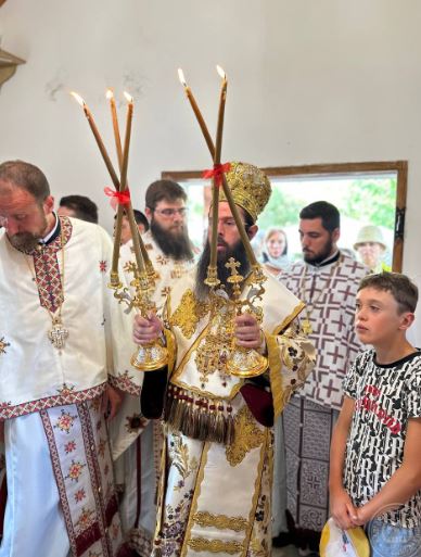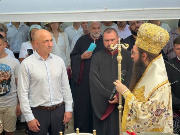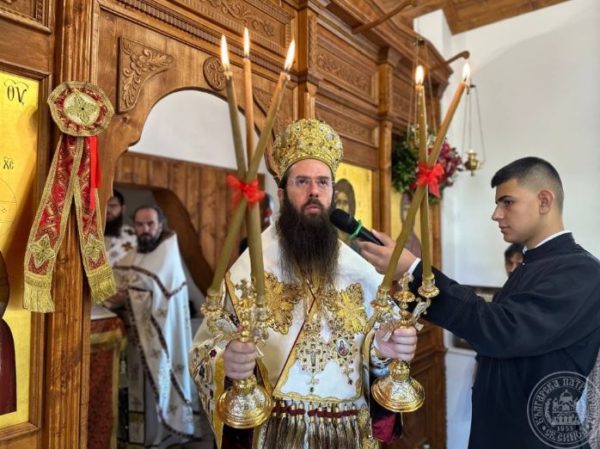 В края на св. Литургия Негово Високопреосвещенство се обърна към всички със слово за празника и отличи отец Димитър Попов с отличието “иконом” за труда и всеотдайното му служение като председател на храма, както и за възстановяването на храмовете в града.