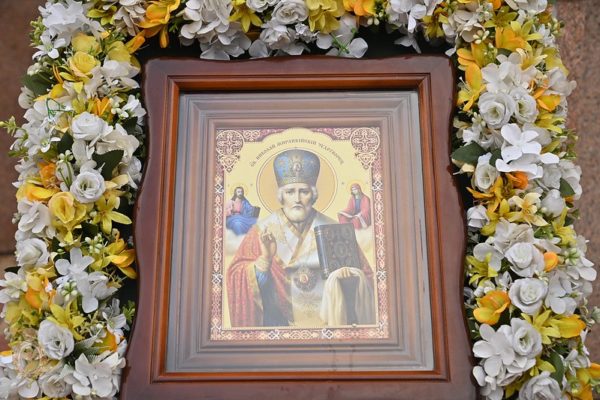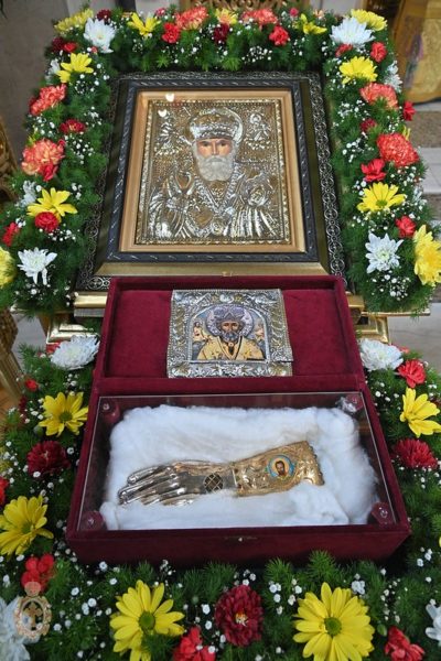 В храма до украсената икона на св. Николай бе поставена мощехранителница с неговите благодатни и чудотворни мощи, и мнозина се поклониха на светинята с вяра и благоговение.