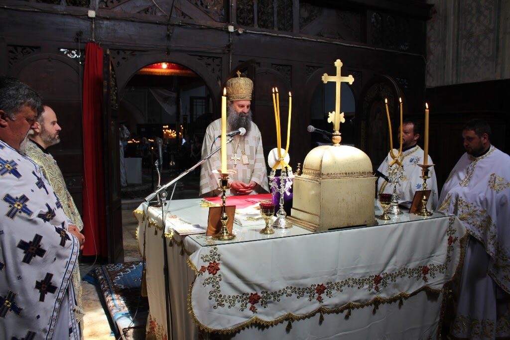 После свете Литургије Митрополит је прочитао молитве са вечерње Педесетнице и благословио славско жито и колач.