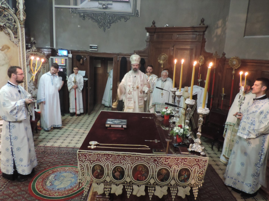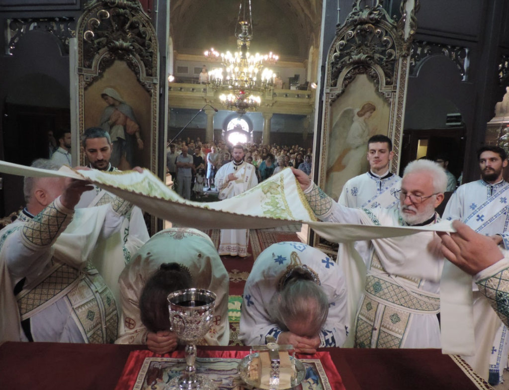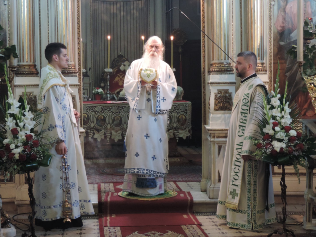 У недељу Свете Педесетнице, 3/16. јуна 2019. године, у Саборном храму у Новом Саду, Његово Преосвештенство Епископ новосадски и бачки госпoдин Иринеј, началствовао је Евхаристијским сабрањем, уз саслужење Епископа мохачког господина Исихија, братства Саборног храма и новосадских ђакона.