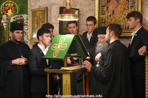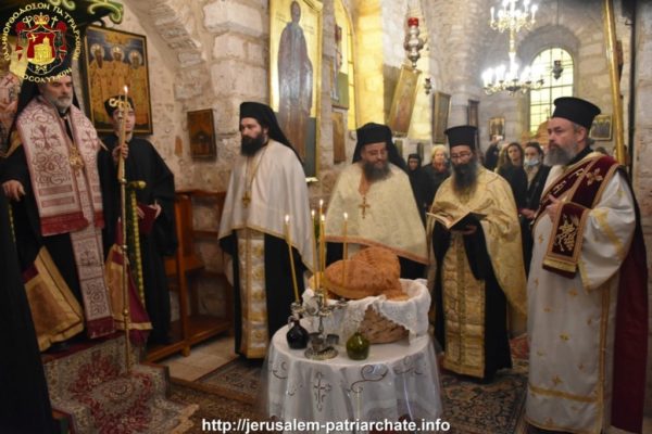 Уочи празника великог светитеља служено је бденије, док је Божанску Литургију на празник служио Архиепископ гераски Теофан, уз саслужење архимандрита Матије, архимандрита Макарија, јереја Нектарија и архиђакона Марка. Појали су византијски хор цркве Светих цара Константина и царице Јелене, архимандрит Јевсевије и г. Василије Гостопулос. Служби су присуствовали монаси, монахиње и верни хришћани из Јерусалима.
