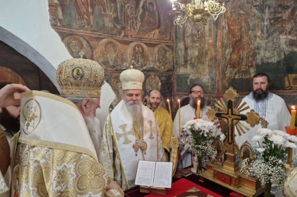Свету Литургију су служили високопреосвећена господа митрополити црногорско-приморски Јоаникије, милешевски Атанасије и рашко-призренски Теодосије, Преосвећени Епископ новобрдски г. Иларион, викар Патријарха српског, уз саслужење монаштва и свештенства Српске Православне Цркве.