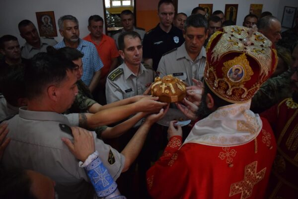 Његово Преосвештенство г. Арсеније је поздравио припаднике 37. и 38. механизованог батаљона и њихове госте који су у великом броју испунили параклис, призвавши на све благослов Божји и молитве Светог Прокопија чији светли пример је најбољи показатељ како треба хришћански живети и војнички храбро војевати за бесмртне вредности Царства Небеског.