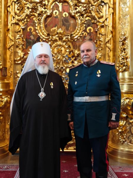 Верховный атаман Павел Задорожный наградил митрополита Кирилла орденом «За службу казачеству», отметив его выдающийся личный вклад в духовную поддержку казачества и развитие плодотворного сотрудничества. Иерей Тимофей Чайкин был удостоен медали «35 лет Союзу казаков России» за активные и плодотворные труды на благо казачества.