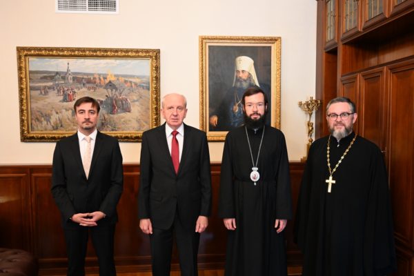 Митрополит Антоний тепло приветствовал гостей в стенах синодального учреждения.
